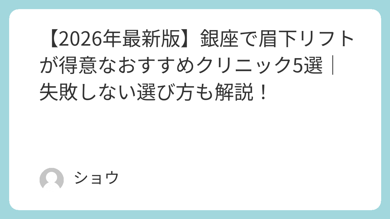 この記事では、2026年最新版として、銀座で眉下リフトを検討中の方に向けて、メリット・注意点・おすすめクリニック5選・実際の口コミ・失敗しない選び方まで徹底解説!